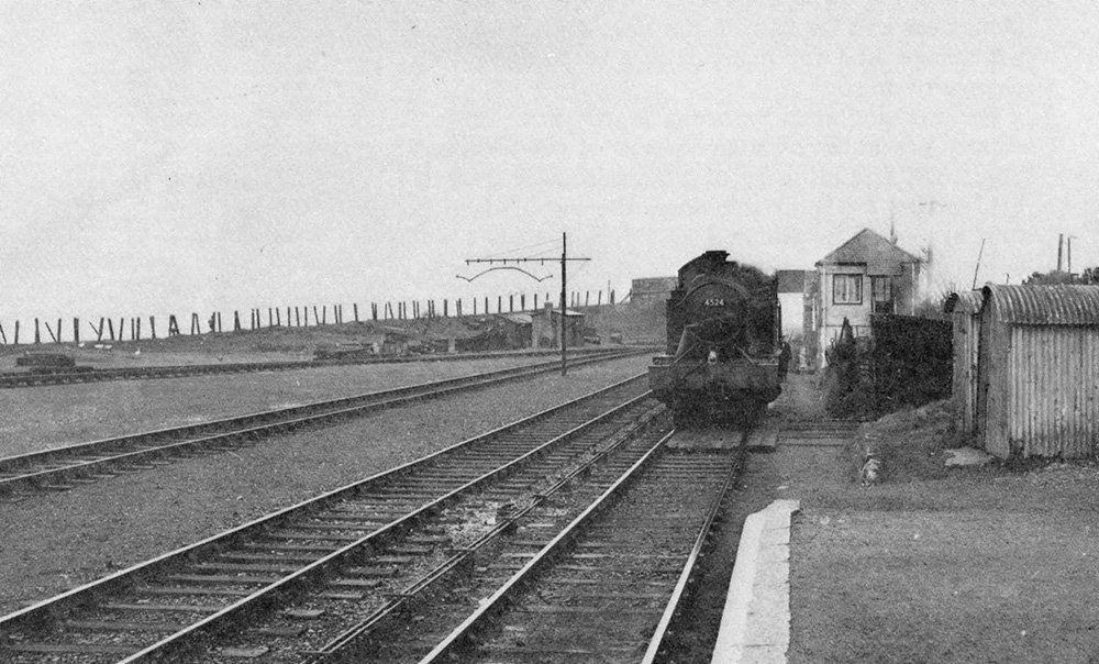 A 45XX class, No 4524 arriving with the train. This side of the signal box can be seen the motor trolley’s garage, next to the lampman’s hut. Image by OPC/BR.