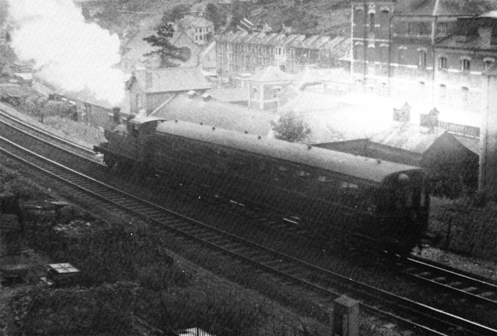 Not the best of images, but this shows the 3:50pm auto train from Tavistock, as it passes the rear of the former Beechwood factory near the site of Lipson Vale Halt. Taken late 1950s. Image by W. E. Stevens.