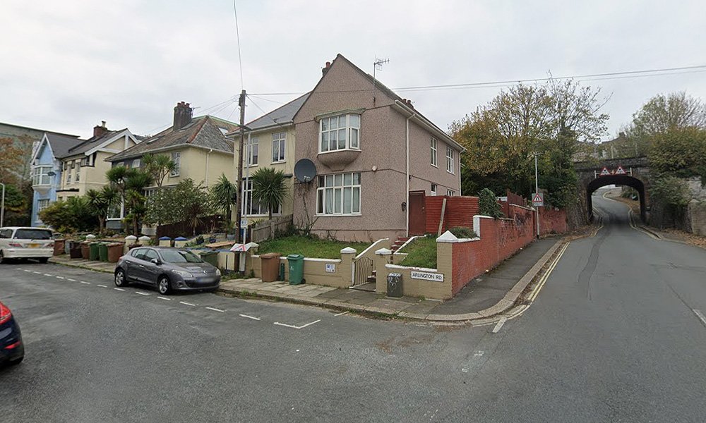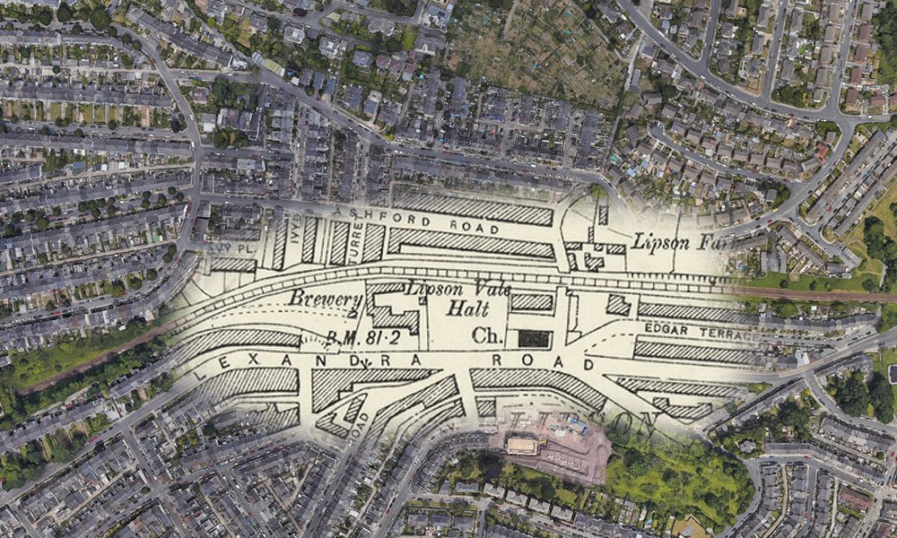 This is stood on the corner of Arlington Road and Ashford Hill. Lipson Vale Halt was just up behind these houses.