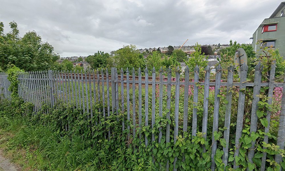 Standing in Holkham Lane, this is all that remains of Lipson Vale Halt; sadly, nothing. The line is still active, but the nothing remains of the halt, no platform, no shelter, no way of even approaching where the halt used to be.