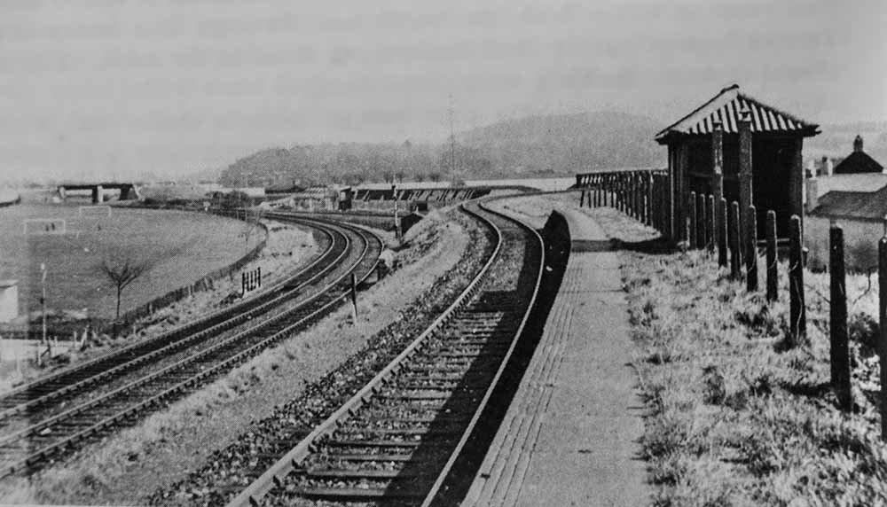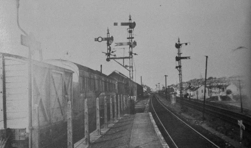 Not much protection from the rain, but the simple shelter was well used. The lower line on the left, was the GWR Sutton Harbour Branch. The line to Plymstock (on the right) would head over Embankment Road. The GWR, operated the line from Laira Green to Plymstock and Yealmpton. Image by L.G.R.P.