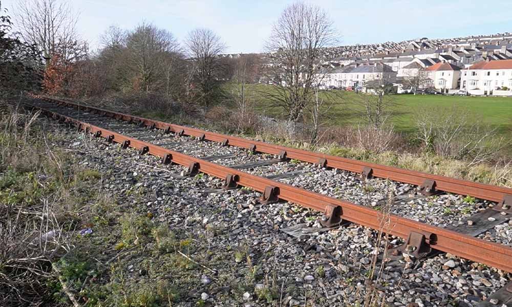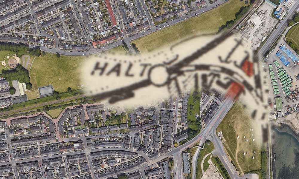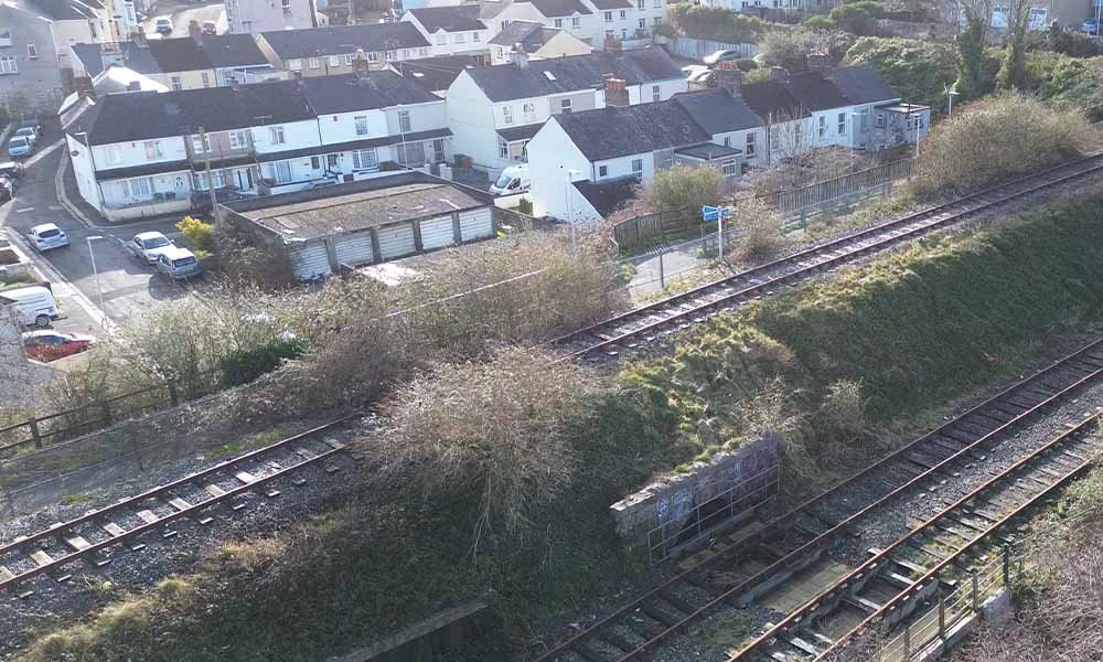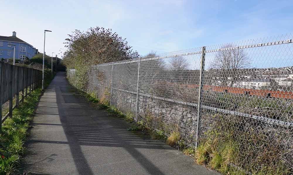From the air, you can clearly see the lines from Friary on the Sutton Harbour Branch (on the left) and the LSWR Plymstock Branch (on the right). Very little of the halt remains.
