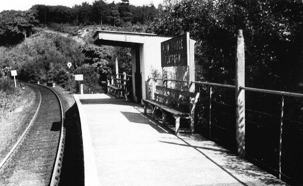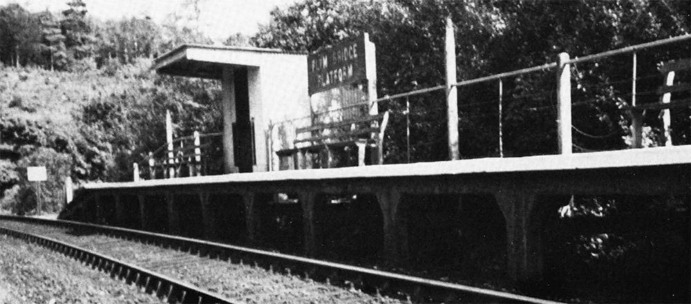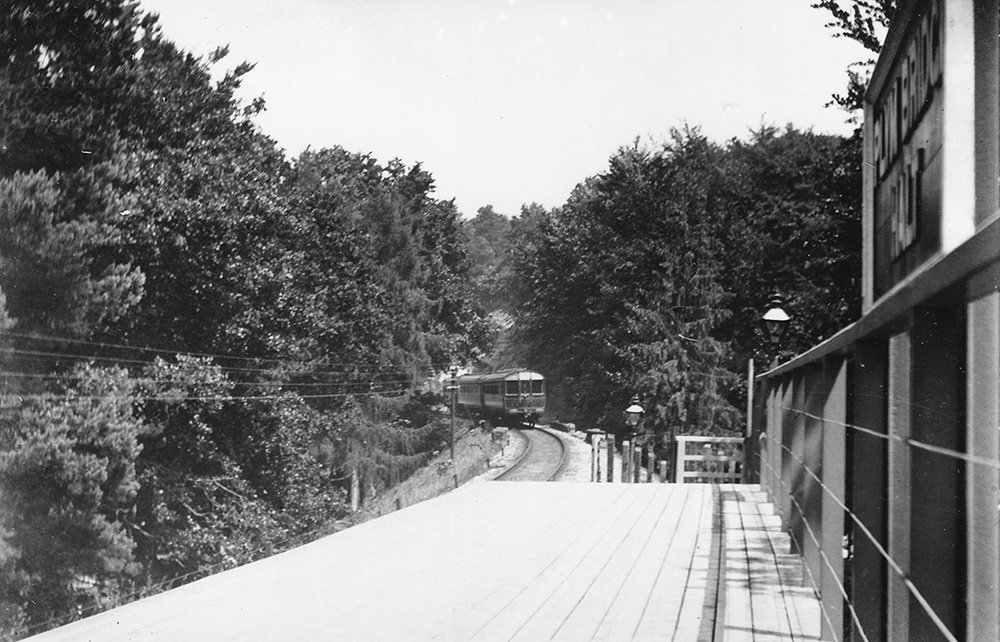 The original timber platform opened on 1st May 1906, and walkers and picknickers used it heavily on weekends. They later rebuilt the platform in concrete, though they made it a little shorter. The railway company did not schedule early morning or late evening trains to stop there because of the lack of lighting. Image by R. M. Casserley coll.